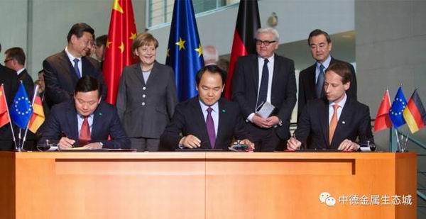 在國家主席習(xí)近平與德國總理默克爾共同見證下,揭陽市中德金屬集團(tuán)、廣東省廣晟資產(chǎn)經(jīng)營有限公司、德國歐綠保集團(tuán)三方共建的“中德資源再生基地”項目成功簽約,正式落戶中德金屬生態(tài)城,并于2014年5月31日舉行了中德葉綠寶資源再生基地奠基儀式。