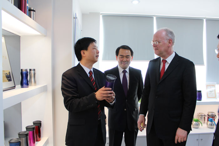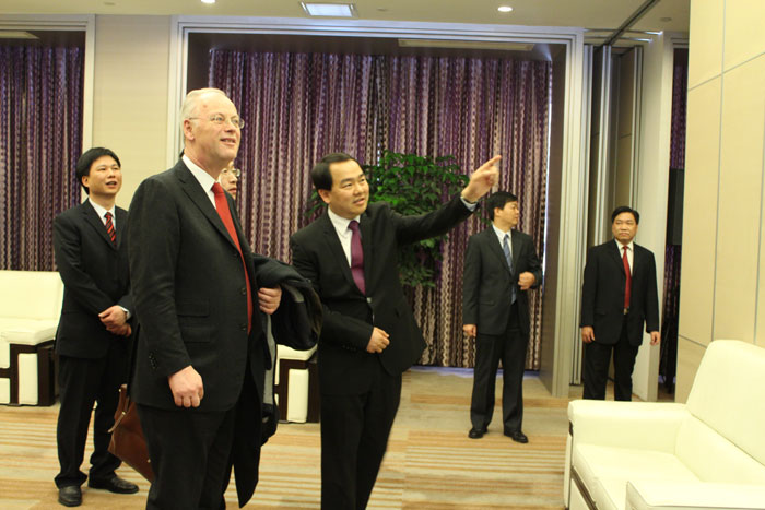 2月24日,中聯(lián)部副部長(zhǎng)李進(jìn)軍和德國(guó)社會(huì)民主黨前主席魯?shù)婪颉ど碃柶?/A>先生一行蒞臨揭陽(yáng)金屬企業(yè)聯(lián)合會(huì),揭陽(yáng)市市長(zhǎng)陳東、揭陽(yáng)市金屬企業(yè)聯(lián)合會(huì)會(huì)長(zhǎng)吳克東陪同參觀。