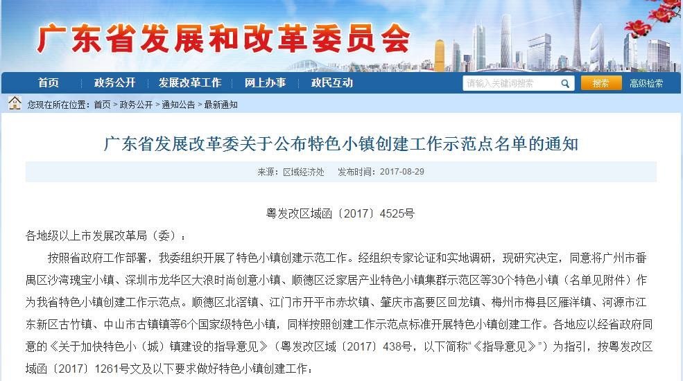 根據(jù)《廣東省發(fā)展改革委關(guān)于公布特色小鎮(zhèn)創(chuàng)建工作示范點名單的通知》(以下簡稱:通知),示范點要按照集產(chǎn)業(yè)鏈、創(chuàng)新鏈、服務(wù)鏈、人才鏈、資金鏈于一體的理念,培育新產(chǎn)業(yè)、新業(yè)態(tài)、新模式,立足資源稟賦、區(qū)位環(huán)境、歷史文化、產(chǎn)業(yè)集聚等特色,做精做強特色小鎮(zhèn)主導(dǎo)產(chǎn)業(yè),促進產(chǎn)業(yè)跨界融合發(fā)展、集聚發(fā)展。著力構(gòu)建特色小鎮(zhèn)高端要素集聚平臺,支持特色小鎮(zhèn)建設(shè)孵化器、加速器、工業(yè)設(shè)計中心、專門化總部基地等新型載體,促進產(chǎn)業(yè)發(fā)展向微笑曲線兩端延伸,努力將特色小鎮(zhèn)發(fā)展成為區(qū)域創(chuàng)新高地、全省現(xiàn)代產(chǎn)業(yè)體系的重要組成部分。