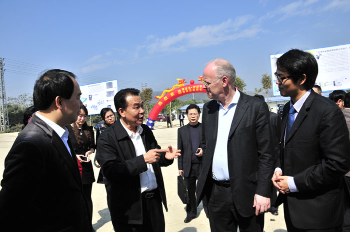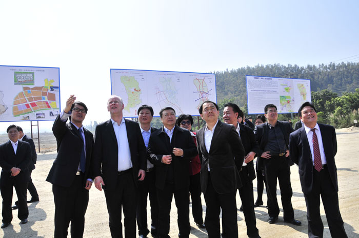 考察團(tuán)一行首先到達(dá)中國南方(揭陽)金屬生態(tài)城現(xiàn)場,市領(lǐng)導(dǎo)陳東,揭東縣領(lǐng)導(dǎo)林炳華為沙爾平先生介紹了金屬城總體的布局,表示金屬城項(xiàng)目建設(shè)將按照“一個(gè)中心(產(chǎn)業(yè)聚集中心)、兩個(gè)基地(生產(chǎn)加工基地、貿(mào)易物流基地)、三大平臺(tái)(科技創(chuàng)新平臺(tái)、電子商務(wù)平臺(tái)、金融服務(wù)平臺(tái))”的定位進(jìn)行規(guī)劃,建設(shè)中國“金屬原材料交易中心、金屬產(chǎn)業(yè)研發(fā)設(shè)計(jì)中心、金屬制品制造中心、金屬機(jī)械制造中心、金屬產(chǎn)品銷售中心、金屬行業(yè)人才技工基地、金屬行業(yè)金融中心”七大板塊。隨后,考察團(tuán)來到中德產(chǎn)業(yè)大學(xué)園區(qū)參觀,考察團(tuán)先后參觀了大學(xué)園區(qū)建設(shè)用地,聽取相關(guān)領(lǐng)導(dǎo)介紹大學(xué)園區(qū)規(guī)劃、布局、生活配套設(shè)施和周邊園區(qū)建設(shè)規(guī)劃。