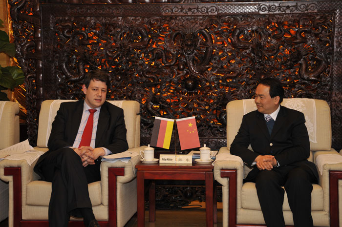 4月10日下午,陳東市長(zhǎng)率領(lǐng)揭陽市金屬聯(lián)合會(huì)企業(yè)家代表團(tuán)與德國(guó)基民盟主席團(tuán)成員、德國(guó)聯(lián)邦議院聯(lián)盟黨黨團(tuán)外交政策發(fā)言人、德國(guó)青年聯(lián)盟主席菲利普·米斯菲爾德先生率領(lǐng)的德國(guó)基民盟企業(yè)家代表團(tuán)在北京進(jìn)行會(huì)談。