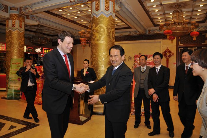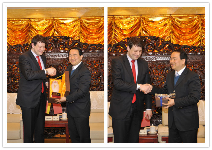 陳東市長(zhǎng)對(duì)米斯菲爾德及德國(guó)企業(yè)家代表來華考察訪問表示歡迎,高度贊賞米斯菲爾德在推動(dòng)中德合作和中德友誼上做出的突出貢獻(xiàn)。陳東市長(zhǎng)表示,德國(guó)是工業(yè)發(fā)達(dá)、科技先進(jìn)的國(guó)家,在循環(huán)經(jīng)濟(jì)、生態(tài)環(huán)保及城市建設(shè)等方面有許多創(chuàng)新舉措和成功經(jīng)驗(yàn),值得我們學(xué)習(xí)和借鑒,在向德國(guó)代表團(tuán)詳細(xì)介紹了揭陽市基本情況以及中德金屬生態(tài)城項(xiàng)目在與德方共建產(chǎn)業(yè)大學(xué)、研究院、工業(yè)設(shè)計(jì)院和品牌推廣平臺(tái)上的實(shí)質(zhì)性進(jìn)展后,陳東市長(zhǎng)向米斯菲爾德發(fā)出帶團(tuán)考察揭陽進(jìn)一步深度合作的邀請(qǐng)。米斯菲爾德對(duì)陳東市長(zhǎng)的熱情接待表示感謝,并表示他多次來華考察訪問印象都非常深刻。在聽完陳東市長(zhǎng)介紹中德金屬生態(tài)城項(xiàng)目后,米斯菲爾德表示揭陽擁有很好的金屬產(chǎn)業(yè)基礎(chǔ),希望雙方能就金屬生態(tài)城建設(shè)展開合作,并對(duì)陳東市長(zhǎng)發(fā)出訪問揭陽的邀請(qǐng)表示感謝,在德國(guó)大選過后他將率團(tuán)訪問揭陽,共同探討和深度推進(jìn)德國(guó)企業(yè)與揭陽企業(yè)的深度合作。