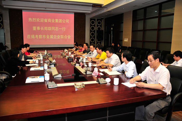 2013年5月16日,廣東省商業(yè)企業(yè)集團公司黨委書記、董事長鄭雄、廣東省商業(yè)企業(yè)集團公司副總經(jīng)理顧小蓉、廣東省拍賣業(yè)協(xié)會監(jiān)事長林朝暉等領(lǐng)導蒞揭考察揭陽市金屬企業(yè)聯(lián)合會,揭陽市政府副秘書長鄭旭亮、揭陽市國資委主任朱享生陪同參觀。