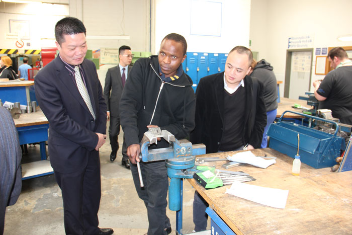 代表團(tuán)在沙爾平先生的介紹下,深入考察了德國(guó)的職業(yè)教育體系,先后參觀了黑森-圖林根大區(qū)工會(huì)下屬的職業(yè)技術(shù)學(xué)校海因里希-克萊因爾學(xué)校,實(shí)地參觀了德國(guó)職業(yè)技術(shù)學(xué)校教學(xué)現(xiàn)場(chǎng)。德國(guó)學(xué)生經(jīng)過(guò)培訓(xùn)后達(dá)到的高超技藝,給代表團(tuán)留下了深刻印象,并立即與相關(guān)部門達(dá)成了職業(yè)教育培訓(xùn)合作意向,為揭陽(yáng)創(chuàng)辦產(chǎn)業(yè)技術(shù)應(yīng)用大學(xué)積累了寶貴的合作資源。