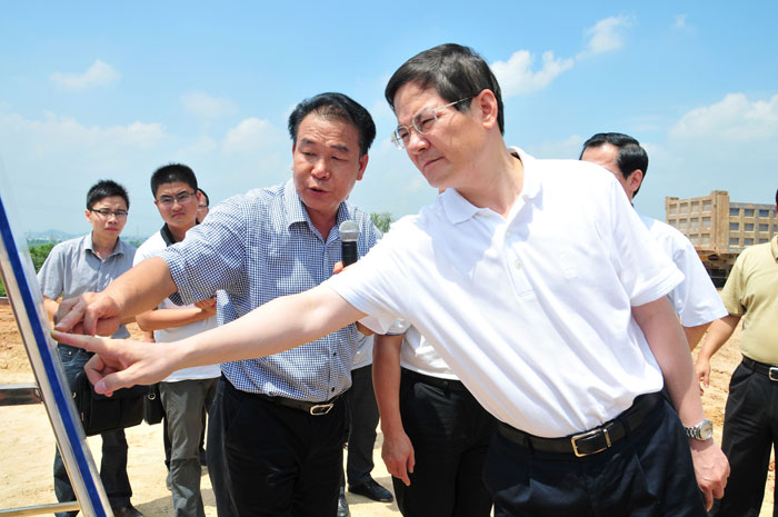 徐少華副省長(右二)在中德大道建設(shè)現(xiàn)場聽取建設(shè)規(guī)劃匯報