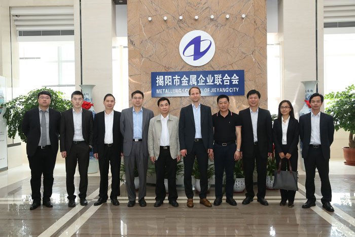 在市金屬企業(yè)聯(lián)合會就項目合作座談后,史偉浩一行與市領(lǐng)導(dǎo)、中德金屬集團(tuán)相關(guān)領(lǐng)導(dǎo)合影