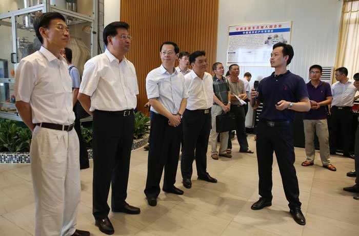 林雄一行先后參觀了表面處理中心項(xiàng)目和余熱發(fā)電項(xiàng)目的展廳,詳細(xì)了解在建項(xiàng)目進(jìn)展、環(huán)保先進(jìn)技術(shù)以及與德合作情況。林雄高度評(píng)價(jià)中德金屬生態(tài)城建設(shè)以來(lái)所取得的成績(jī)。他認(rèn)為,該項(xiàng)目搶抓全球資源重新配置的機(jī)遇,實(shí)施以德國(guó)為重點(diǎn)的國(guó)際合作,發(fā)展理念非常好;希望積極作為,扎實(shí)推進(jìn)各個(gè)項(xiàng)目落實(shí)。他還要求九三學(xué)社廣東省委充分發(fā)揮智庫(kù)作用,發(fā)揮聯(lián)絡(luò)廣泛的優(yōu)勢(shì),促進(jìn)招商引資取得實(shí)效。