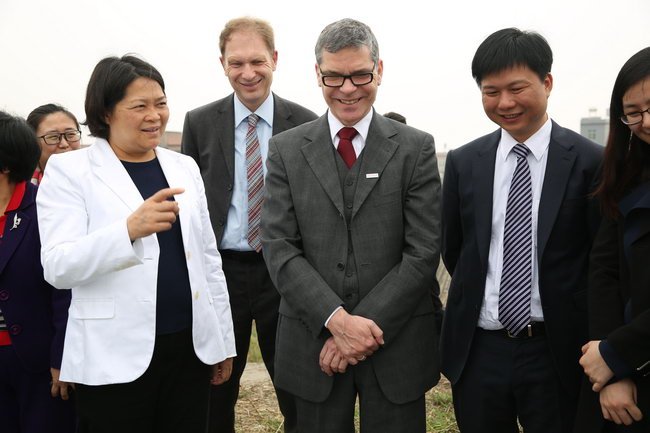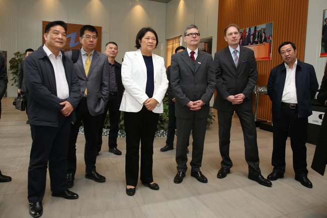 2015年3月3日,德國埃斯林根應(yīng)用科技大學(xué)副校長查耐爾斯基和博克曼一行蒞揭考察中德金屬生態(tài)城及中德雙元應(yīng)用科技大學(xué)選址,共同商討推進(jìn)合作辦學(xué)事宜。市委書記、市人大常委會(huì)主任嚴(yán)植嬋等陪同活動(dòng)。