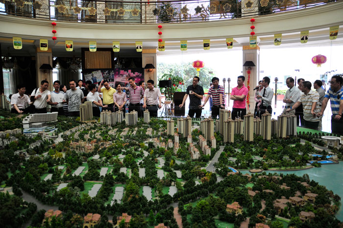 全體股東在沙盤模型前聽取客天下產業(yè)園發(fā)展規(guī)劃介紹