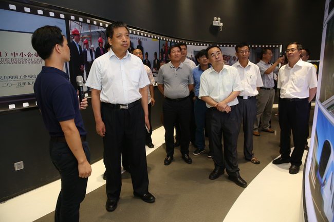 周孟波一行參觀中德金屬生態(tài)城營銷展廳,聽取園區(qū)建設(shè)的情況介紹