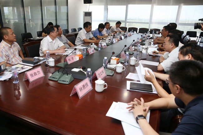 周孟波一行與陳澄民等市領(lǐng)導(dǎo)在空港經(jīng)濟(jì)區(qū)建立倉儲物流中心進(jìn)行座談