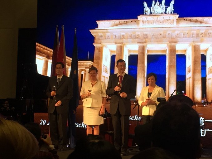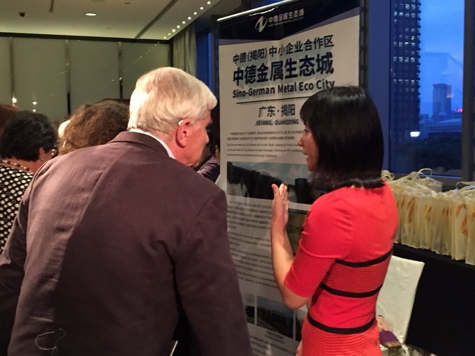 10月12日,受德國駐廣州領(lǐng)事館的邀請,中德金屬集團(tuán)副總裁晉衛(wèi)東攜集團(tuán)招商、營銷等部門主要人員參加了德國統(tǒng)一25周年德國國慶日活動;顒蝇F(xiàn)場來自中德兩國的各個協(xié)會、機(jī)構(gòu)及企業(yè)代表借藝術(shù)形式進(jìn)行商務(wù)、文化交流。作為華南區(qū)首個中德中小企業(yè)合作區(qū),中德金屬生態(tài)城項目一直以來得到了德國駐廣州總領(lǐng)館的大力支持。呂海慕總領(lǐng)事在致辭中提出,希望能進(jìn)一步促進(jìn)中德之間的合作,對揭陽的中德合作成果表示充分肯定。廣東省政府副秘書長羅娟參加了活動并致辭,她提出,廣東省政府將繼續(xù)支持中德金屬生態(tài)城這一中德合作平臺,促進(jìn)廣東與德國的合作。