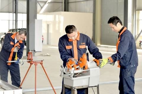 圖為施工人員正在戴維特余熱發(fā)電設備生產(chǎn)基地進行氣管安裝。涂英鵬 攝