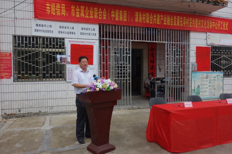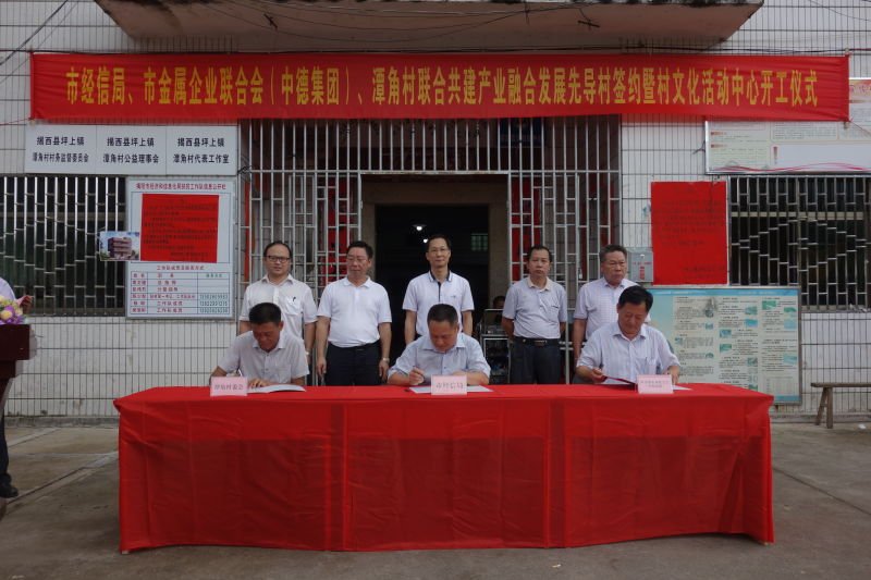 根據(jù)揭陽市委、市政府關(guān)于動員市社會組織參與精準扶貧的指示精神,9月6日上午,市經(jīng)信局、市金屬企業(yè)聯(lián)合會、中德金屬集團與揭西縣坪上鎮(zhèn)潭角村聯(lián)合舉行共建產(chǎn)業(yè)融合發(fā)展先導村簽約暨村文化活動中心開工儀式,爭取把該村打造成揭陽互聯(lián)網(wǎng)+精準扶貧、精準脫貧的示范村,推動貧困戶早日脫貧致富。