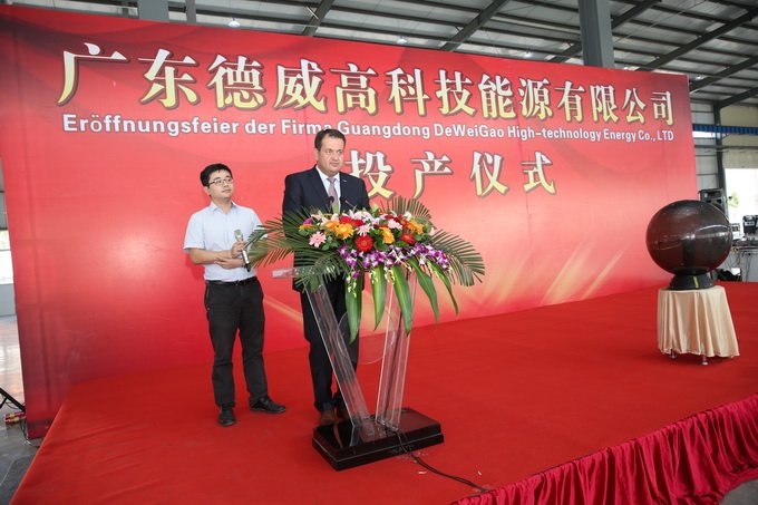 投產(chǎn)儀式上,市政府副秘書(shū)長(zhǎng)李志堅(jiān)表示,近年來(lái),揭陽(yáng)深入貫徹“一帶一路”和“創(chuàng)新驅(qū)動(dòng)”發(fā)展戰(zhàn)略,不斷深化對(duì)德合作,全方位支持中德金屬生態(tài)城建設(shè)。如今,園區(qū)建設(shè)全面加快,入園企業(yè)德威高公司的投產(chǎn)便是一個(gè)很好的范例。當(dāng)前,國(guó)家高度重視并鼓勵(lì)資源的循環(huán)利用和環(huán)境保護(hù),資源高效利用的市場(chǎng)十分廣闊。他希望德威高公司要以投產(chǎn)運(yùn)行為起點(diǎn),瞄準(zhǔn)國(guó)際一流,依托中德金屬生態(tài)城這一平臺(tái),深化與德國(guó)等發(fā)達(dá)國(guó)家的技術(shù)合作,把企業(yè)打造成為資源高效開(kāi)發(fā)利用的先行者。他還強(qiáng)調(diào),各級(jí)有關(guān)部門要進(jìn)一步強(qiáng)化服務(wù)意識(shí),為公司創(chuàng)造寬松的發(fā)展環(huán)境,推動(dòng)更多中德合作項(xiàng)目落地。